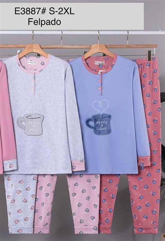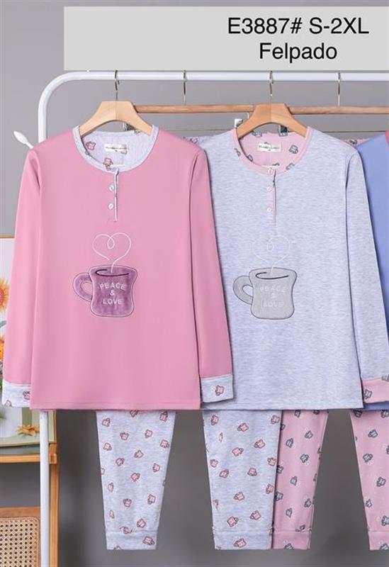 Pijama de mujer afelpado. Pijama estampado. Combinado a dos colores entre camiseta y pantalón.