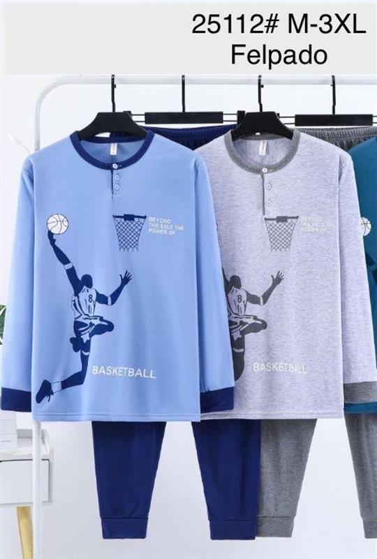 Pijama afelpado para hombre. Pijama con dibujos deportivos. Puños en camiseta y pantalón.