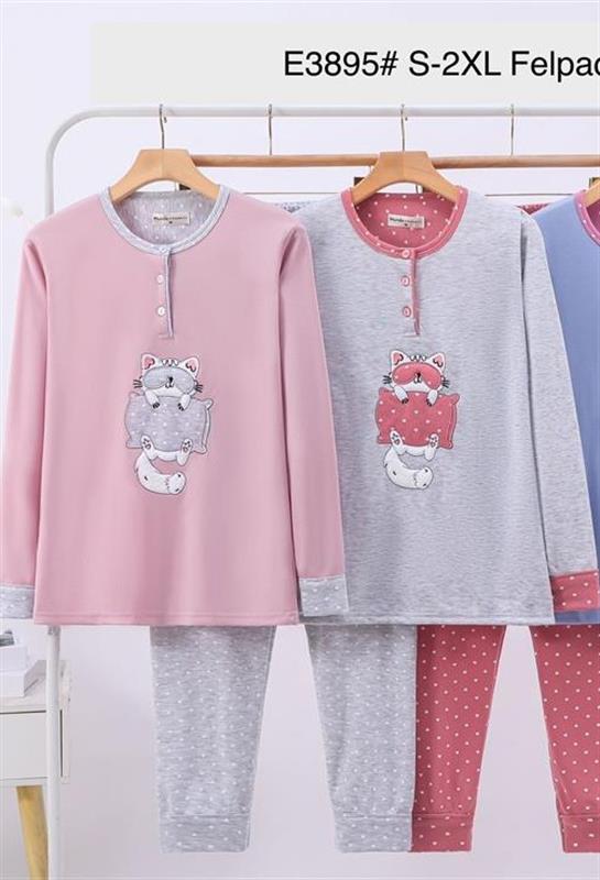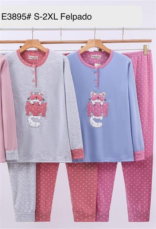 Pijama de invierno para mujer. Combina a dos colores. Con estampado en camiseta a juego con el pantalón.