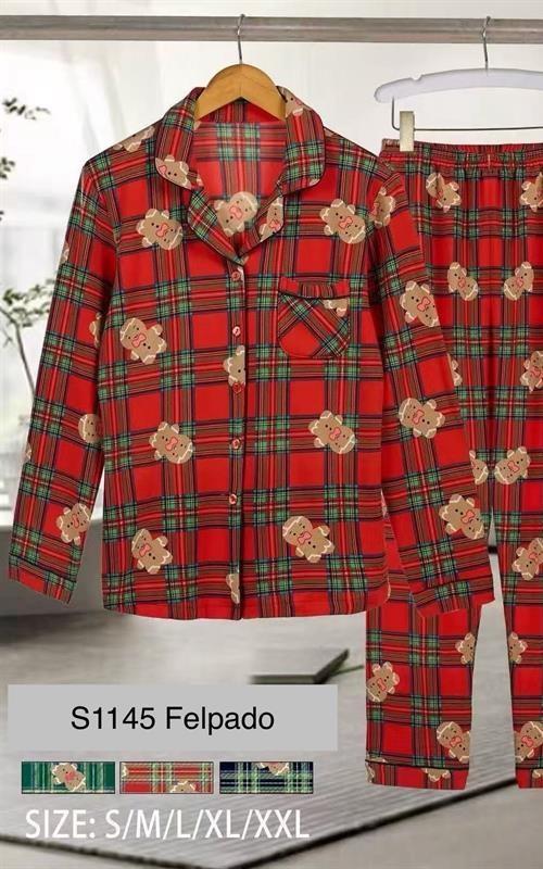Pijama navideño para hombre. Pijama de chaqueta abotonada con bolsillo. Motivos navideños.