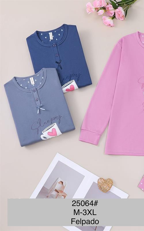 Pijama de mujer afelpado con estampado Taza en la camiseta.
