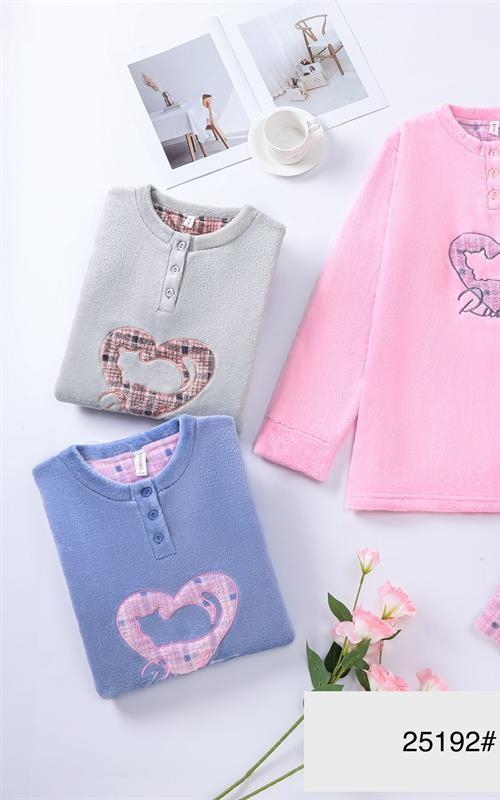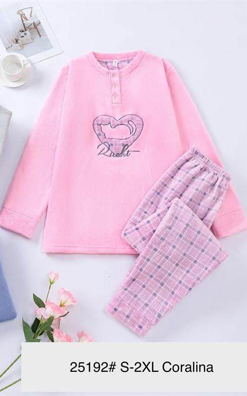 Pijama juvenil de coralina, con estampado a juego de la camiseta con el pantalón. Puños en camiseta y pantalón. Tejido muy suave y cómodo.