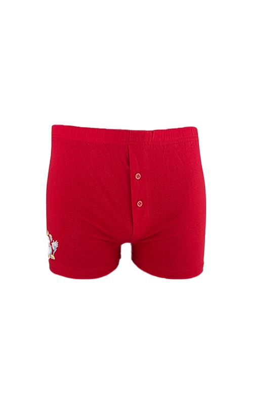 Bóxer rojo en algodón. De acabado liso con dibujo de Papá Noel. Abotonado.