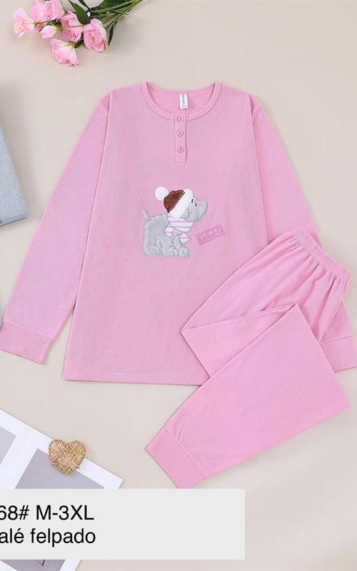 Pijama de mujer en canalé afelpado. Pijama sencillo con dibujo.
