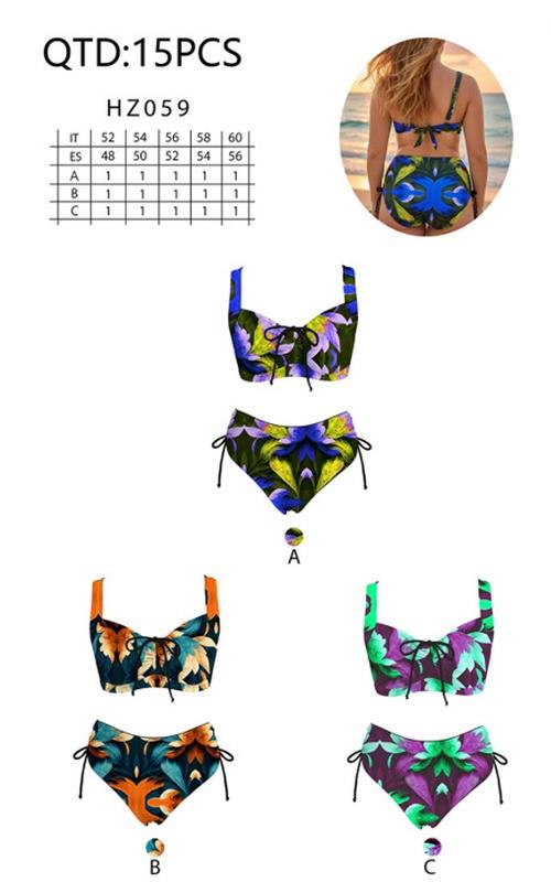 F47-2 Bikini triángulo rayas azul marino mujer estilo marinero