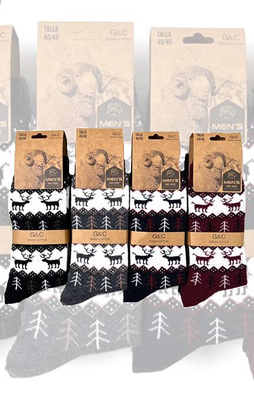 Calcetín para hombre. Calcetín elaborado con lana, con estampados invernales.