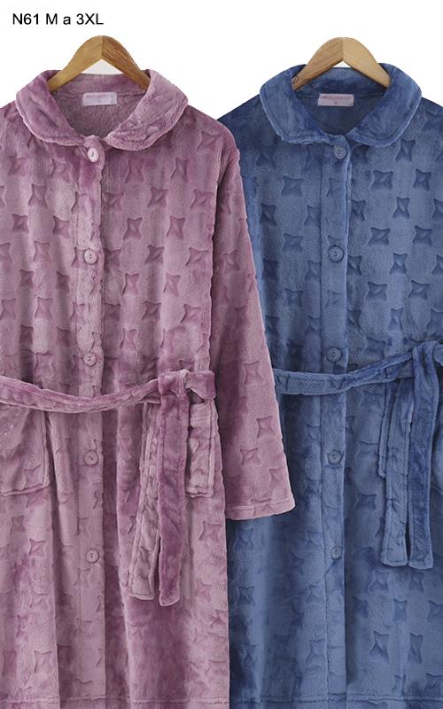 Bata de coralina para mujer. Bata con dibujo. Bata abotonada y con cinturón. Con bolsillos.