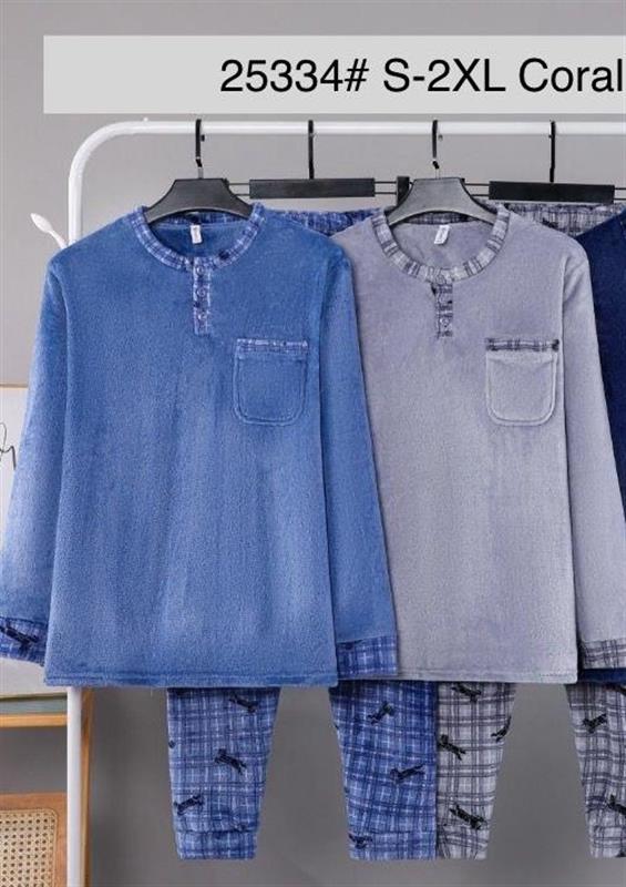 Pijama de hombre estampado, de coralina. Bolsillo en camiseta.