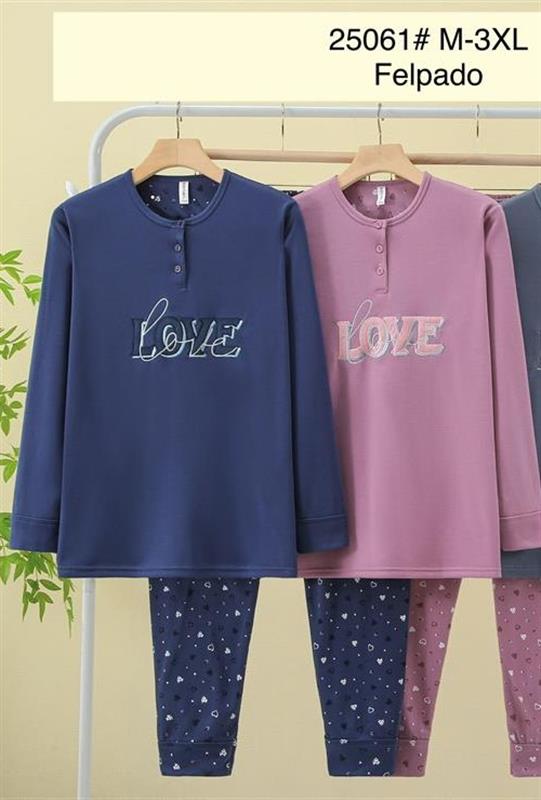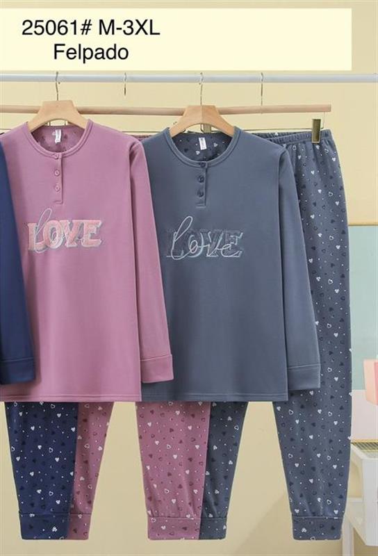 25061 Pijama afelpado con dibujo para mujer