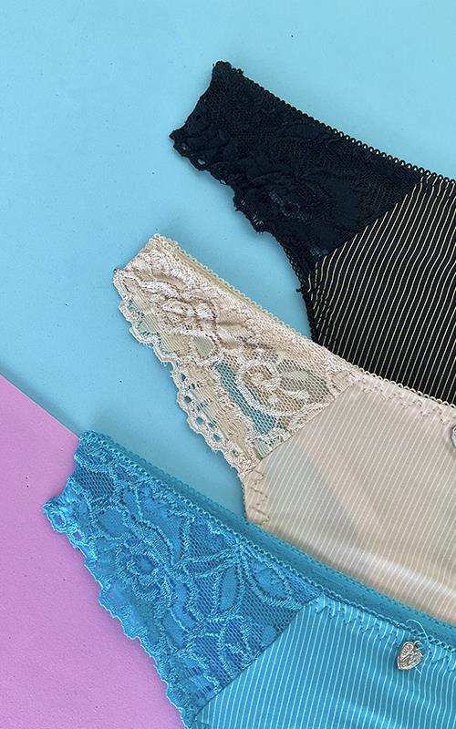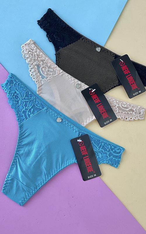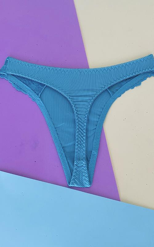 Tanga de encaje con raya ejecutiva. Tanga de tira normal. Según fotografía.