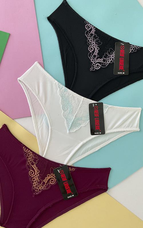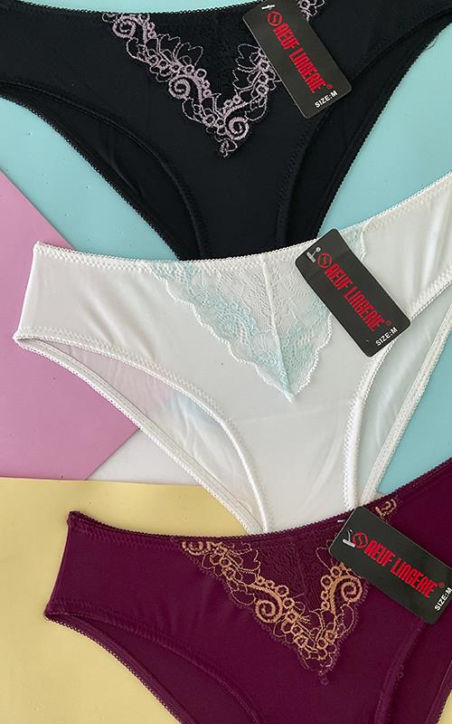 Bonita braga de licra con elegante encaje en parte delantera. Braga de talle bajo.