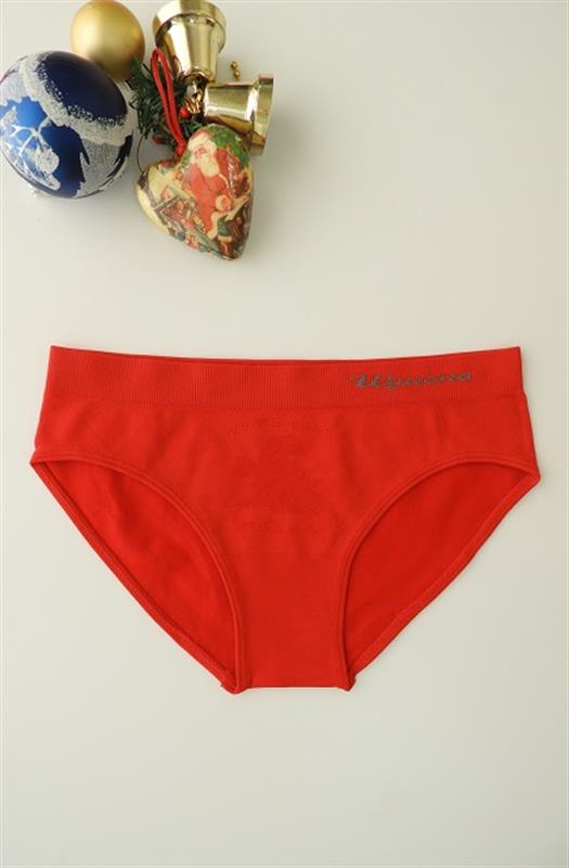 Braga infantil roja en sin costura. De tejido muy elástico y cómodo. Con un pequeño dibujo de una flor en la parte delantera de la braguita.