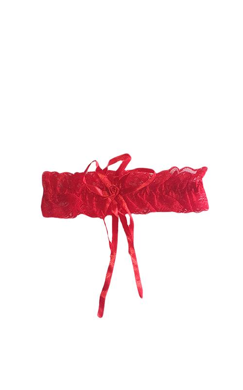 Liga para mujer. Liga en color rojo con encaje y lazo de satén en rojo.