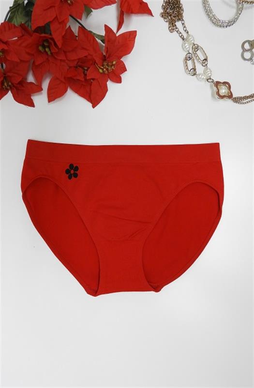 Braga roja de microfibra. De tejido muy elástico y cómodo. Lisa con un pequeño detalle de una flor.