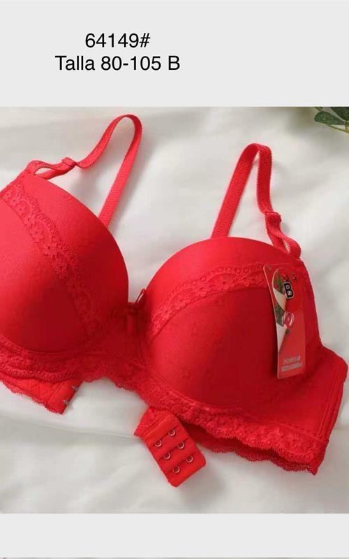 64149 Sujetador rojo con relleno y encaje.